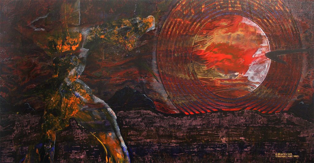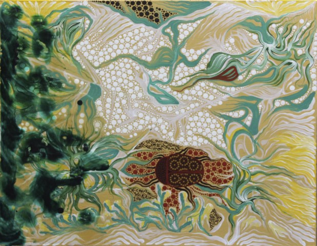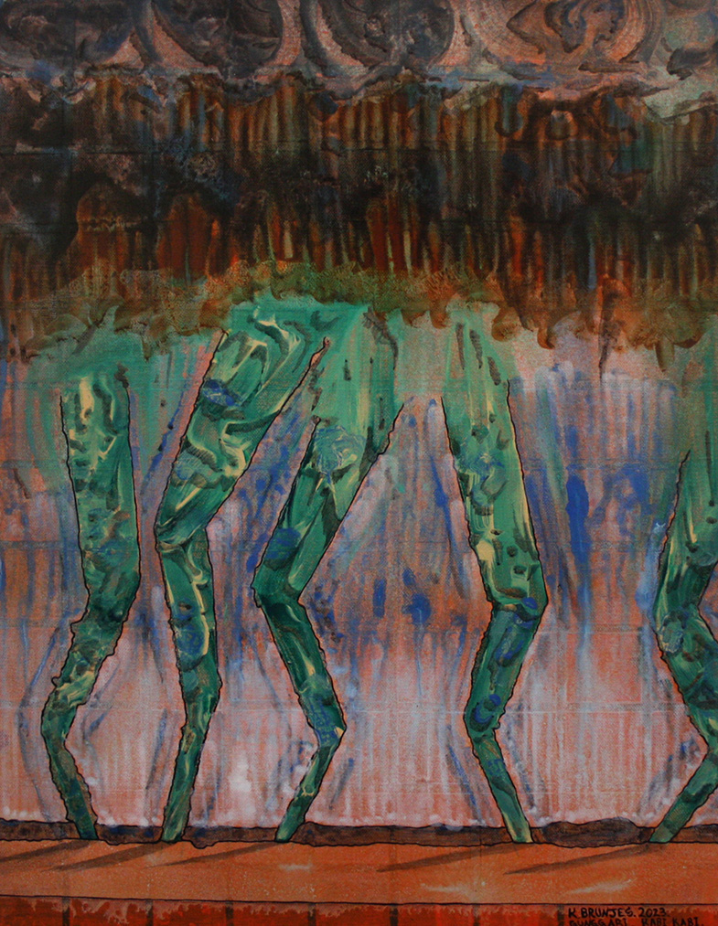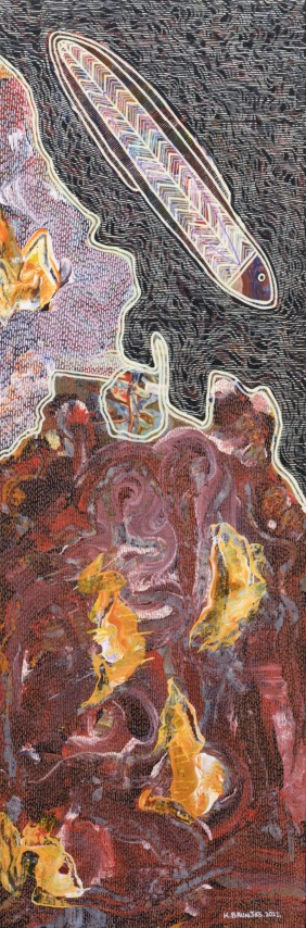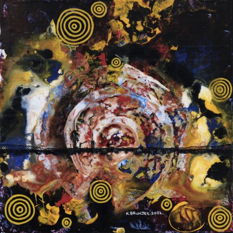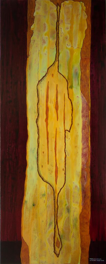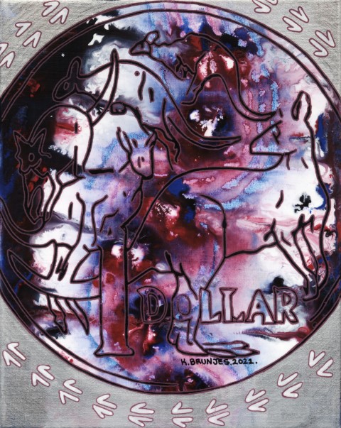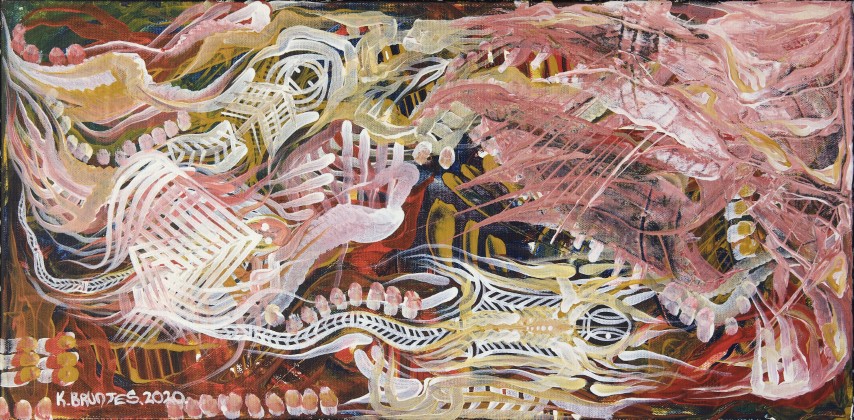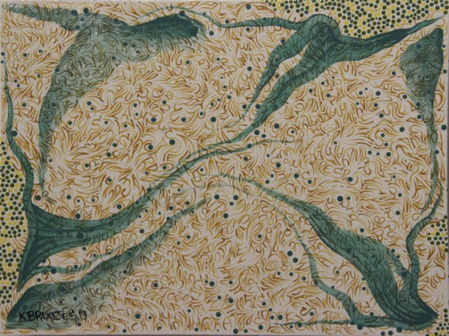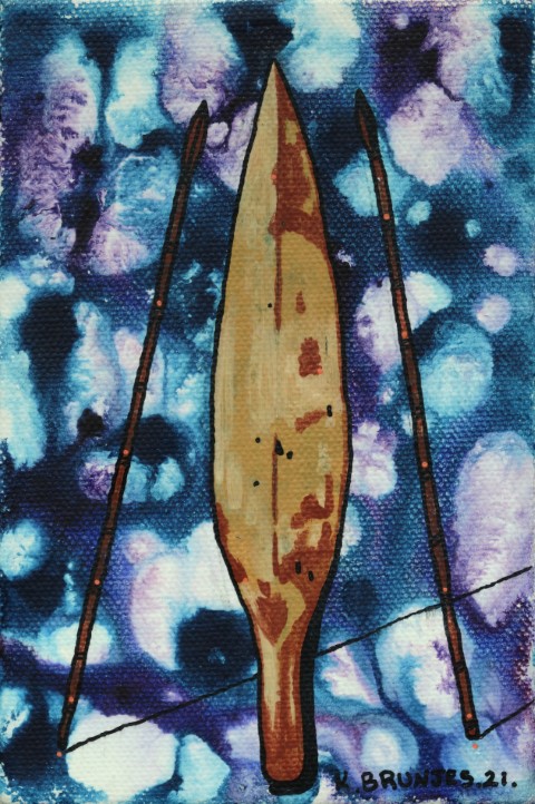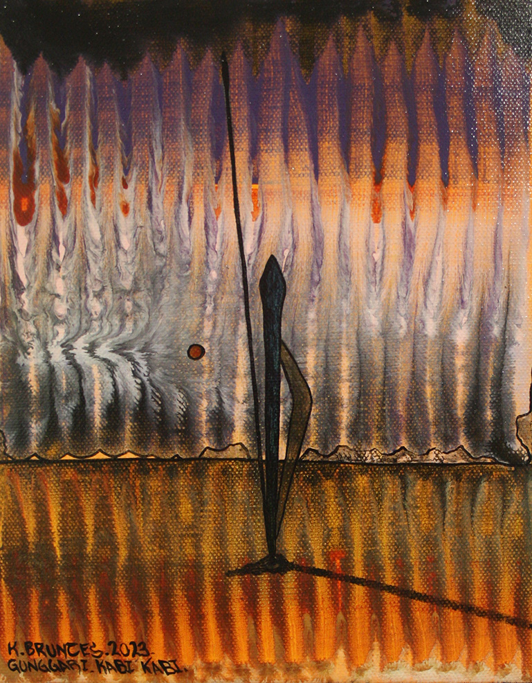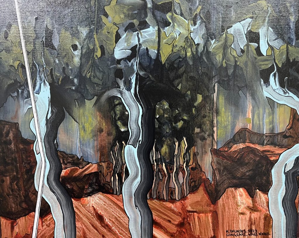 Kane Brunjes is a Gunggari, Kabi Kabi man practicing in both public and gallery realms. Through his art practice Brunjes aims to solidify and represent a visual portrayal of how he views and reacts to the environment surrounding him with consideration to history and story.
